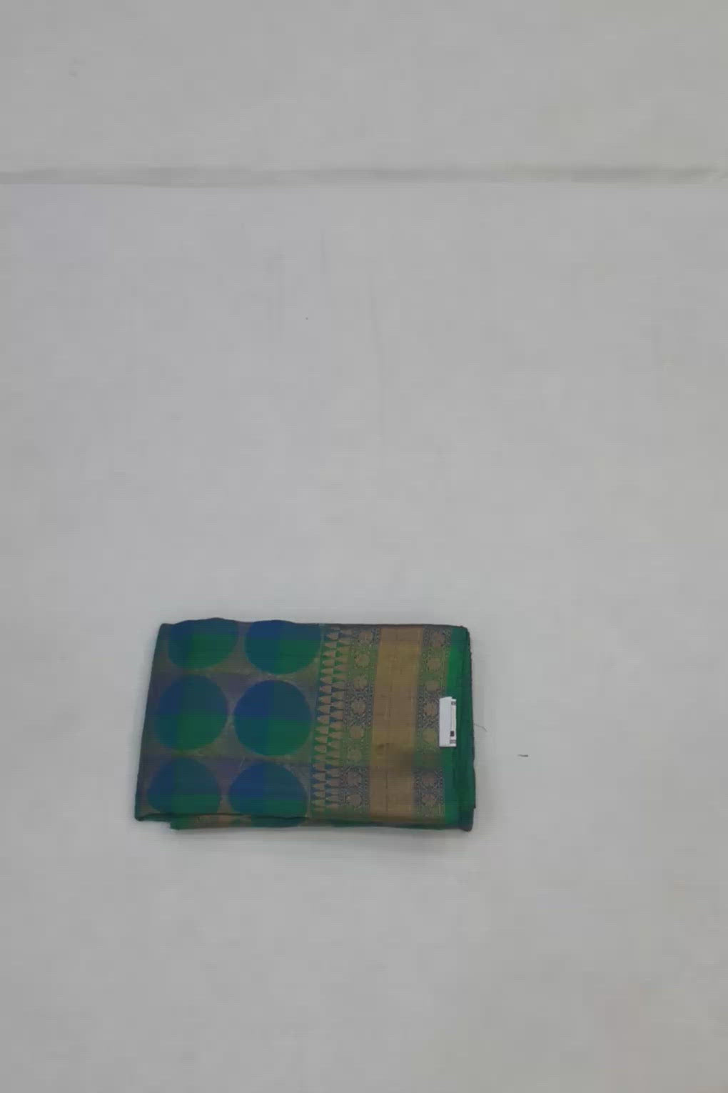 Pure Silk Banarasi Saree with Blue and Green Body and Moon like patterns all over the body.