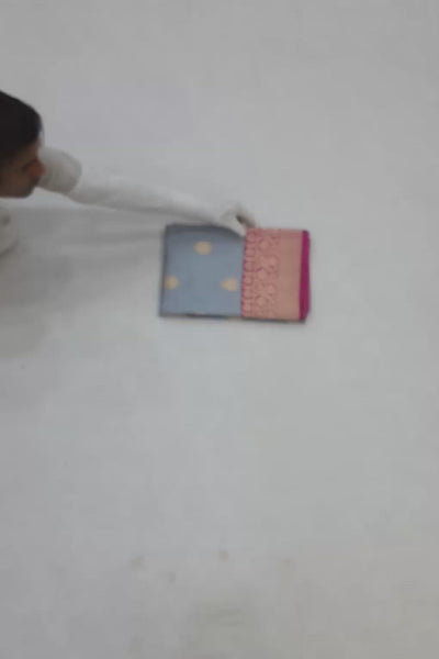 Katan Silk Banarasi Handloom Saree with Light Grey body and Fuchsia Pallu weaved with Kadhua Technique